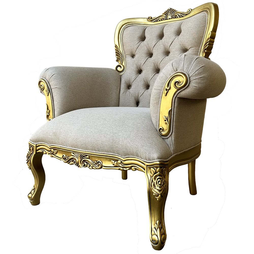 Poltrona Clássica Francesa de Luxo Entalhada em Folha de Ouro e Capitonê